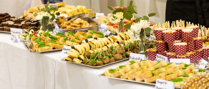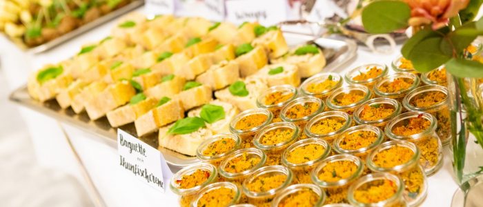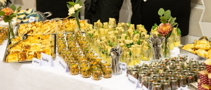 Angebot und Service richten sich nach unseren Möglichkeiten und den individuellen Wünschen der Auftraggeber:innen. Zubereitet werden vor allem Fingerfood, kalte Speisen sowie Kaffee und Kuchen für kleine bis größere Veranstaltungen. Nach Absprache kann auch Geschirr bereitgestellt werden.
