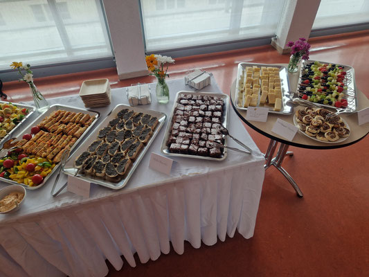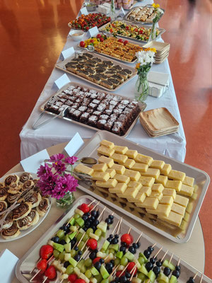 Die angebotenen Speisen und der Service richten sich nach unseren Möglichkeiten und den individuellen Wünschen der Auftraggeber:innen. So können vorallem Fingerfood und/oder kalte Mittagessen